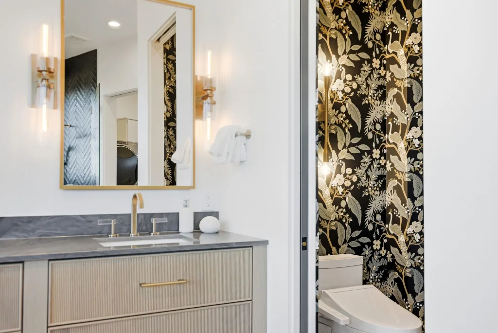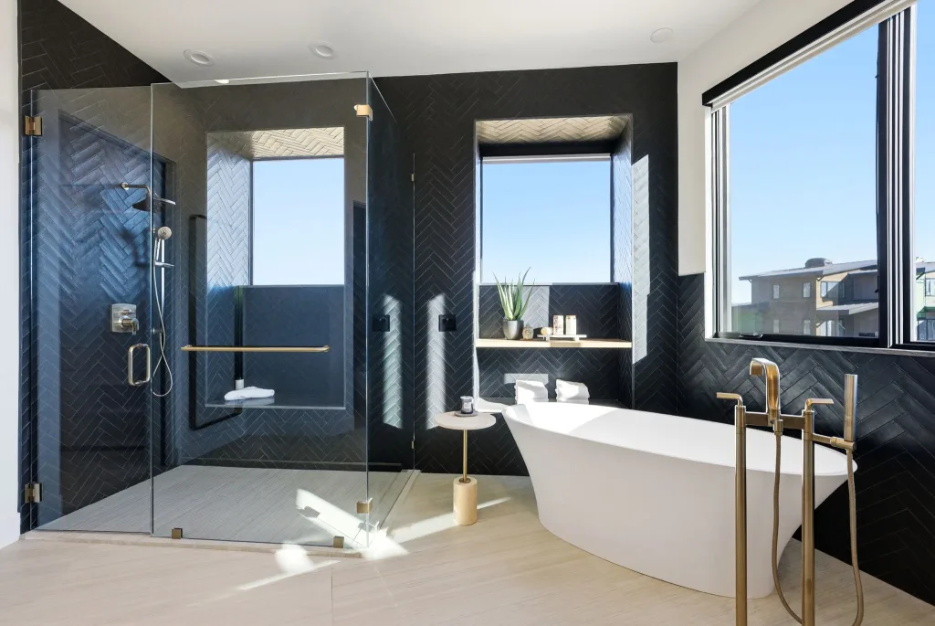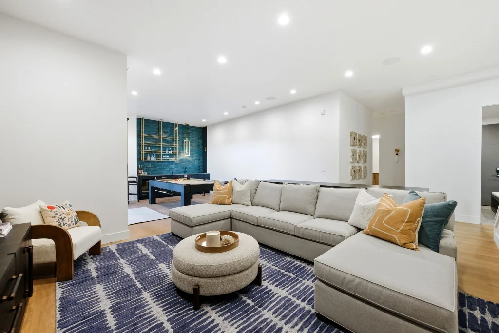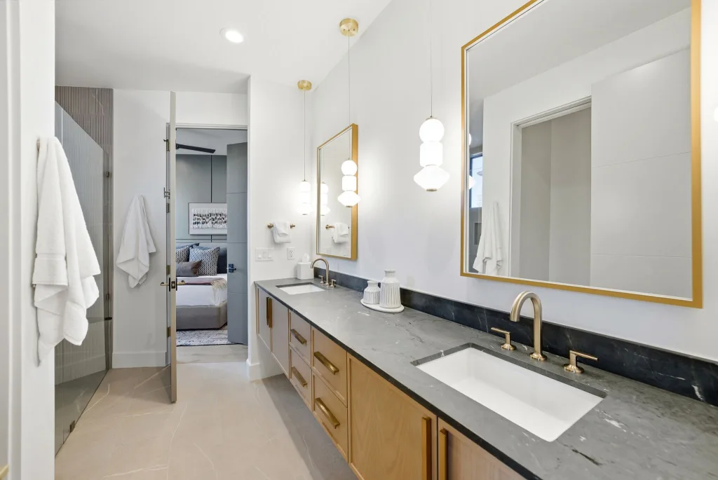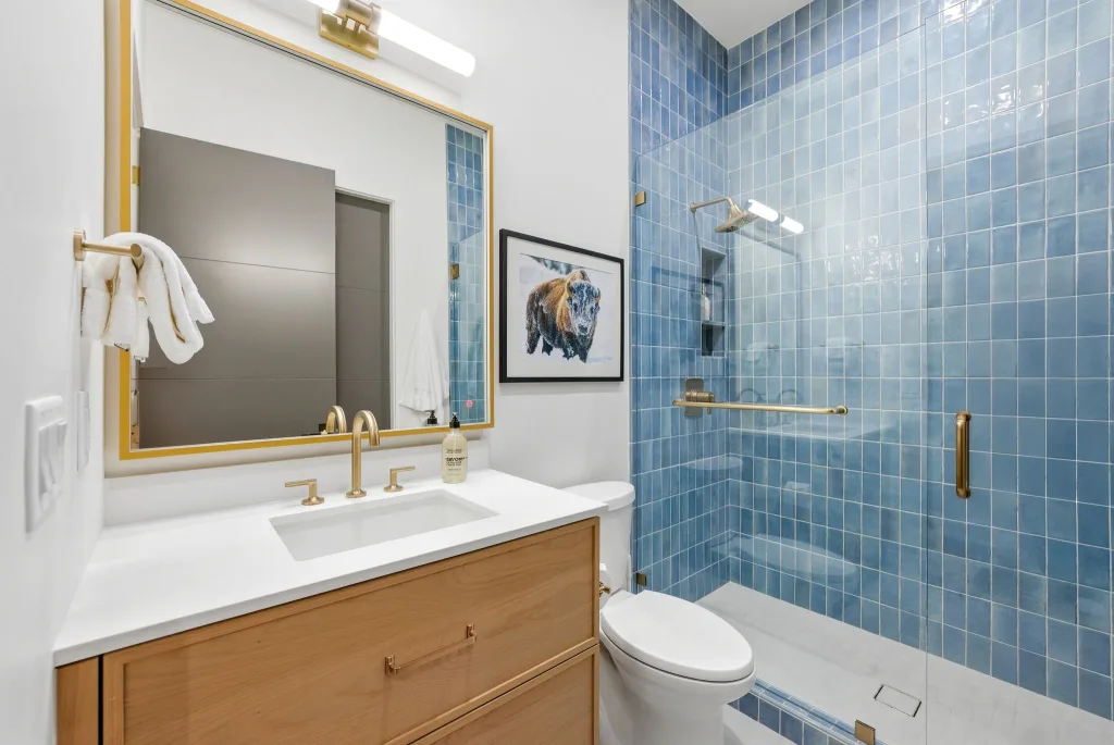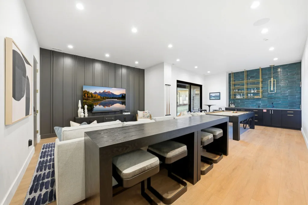 A custom bunk room on the upper level makes winding down after adventures effortless for even the littlest family members. The outdoor kitchen, patio heaters, and sunken hot tub extend the home’s gathering spaces into the outdoors year-round, whether for long summer evenings and winter après.