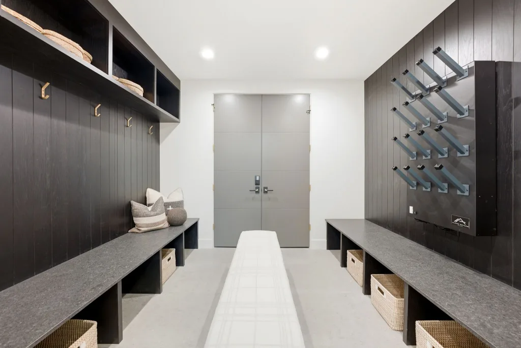 Built as a personal getaway for our clients that easily flexes to accommodate short-term rentals, this home is anchored by gathering spaces on all three floors. The floor plan reflects the patterns and flow of mountain living with rooms placed exactly where you need them to be to easily move to the slopes and trails to dinner and cocktails. The gear room on the main level has benches, hooks, plenty of space for skis and poles, and, perhaps best of all, an eight-pair boot warming system for quick drying.