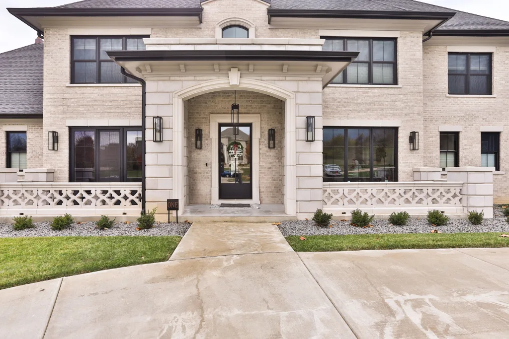 When it comes to curb appeal, they have it in spades from the moment the front elevation greets you with an understated formality. The exterior is a combination of Antique White brick and architectural cast stone that makes this home stand out. The cast stone frames the portico, window headers and sills, and extends along the front railing system. A louvered copper dormer and custom-designed copper finials accentuate the peeks of the home's soaring roof lines, adding heritage and grace.